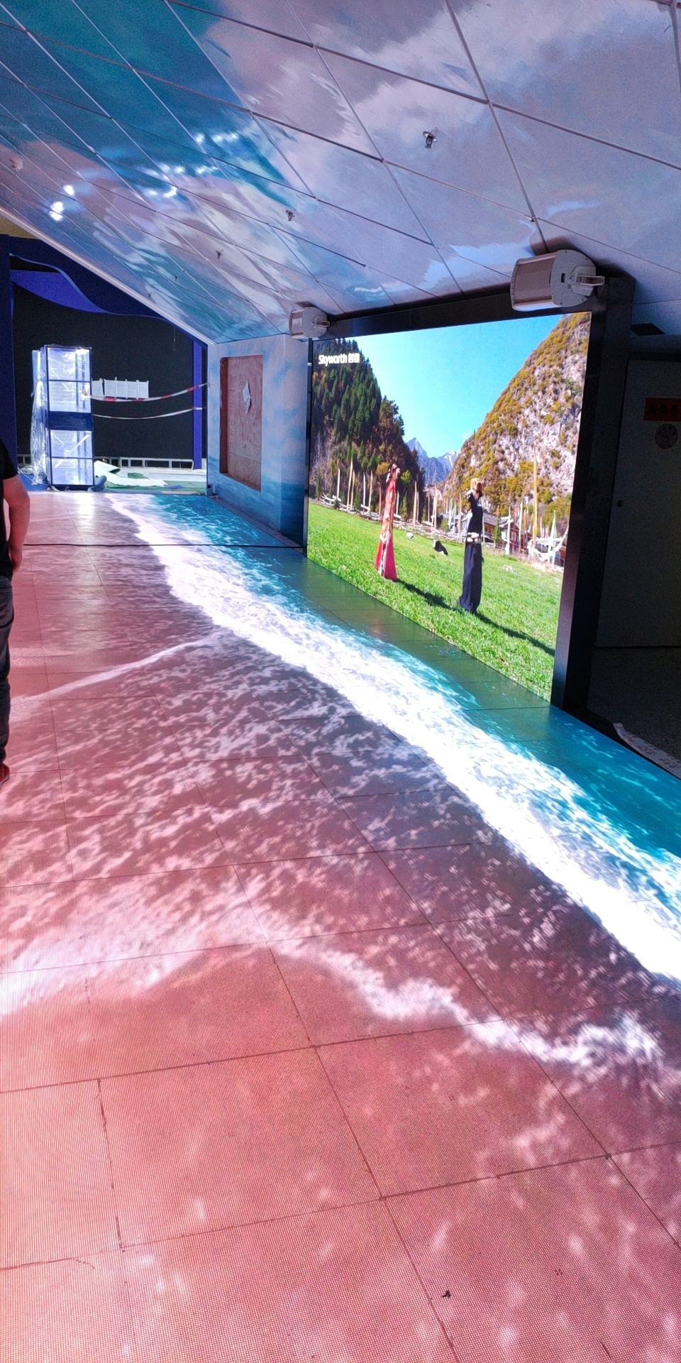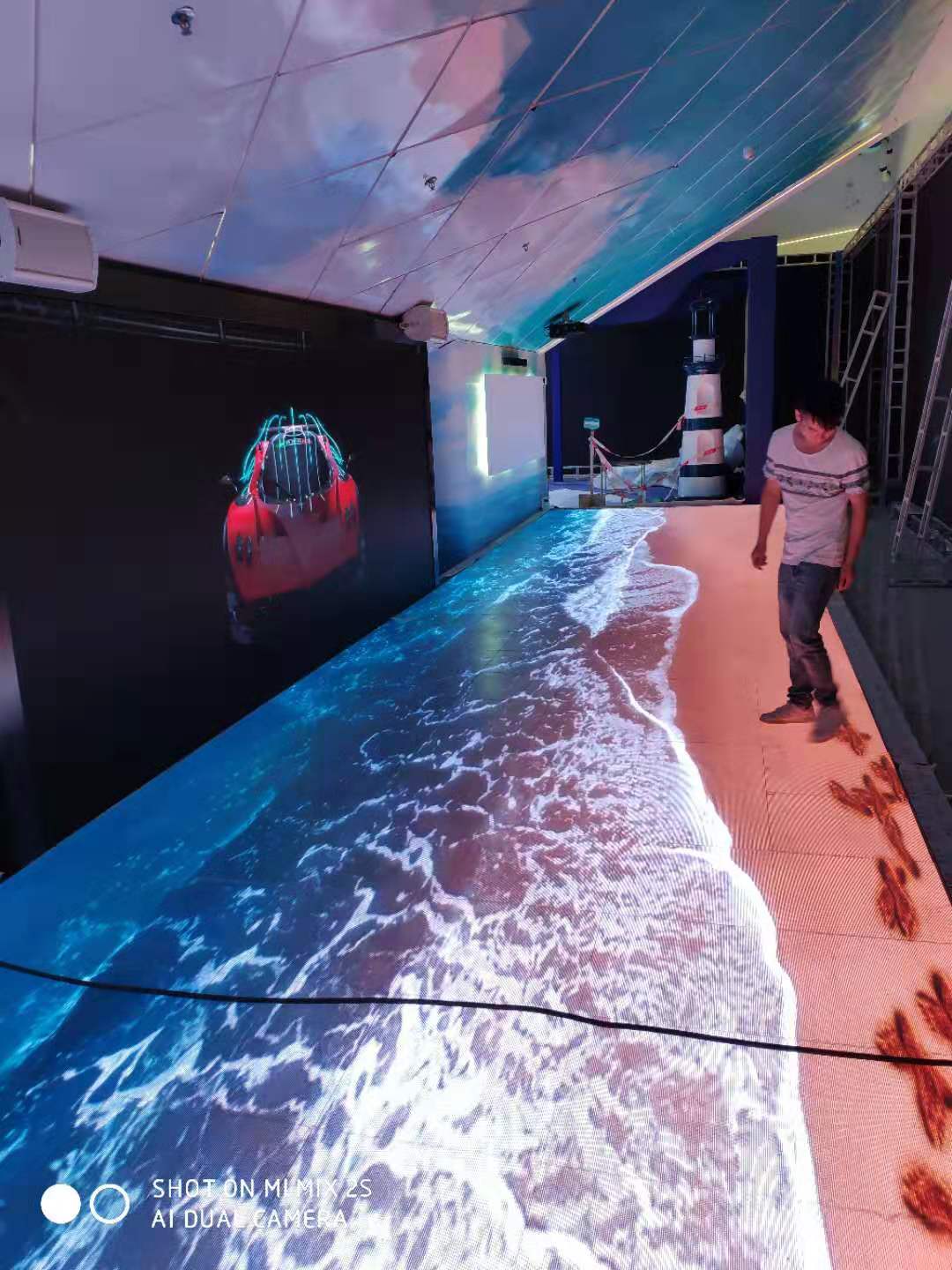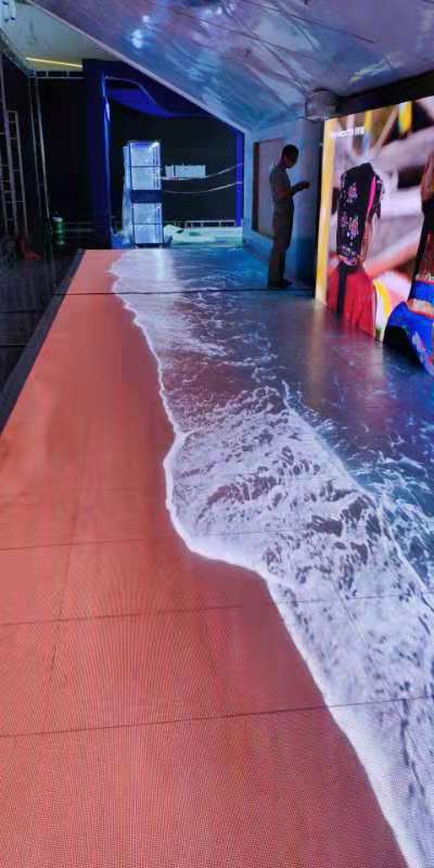 LED地磚屏它擁有高密度物理像素點和卓越的防水性能,酒水撒落在上面絲毫不能影響其正常工作。它還有個最大的特點就是載重性能,它可以承重人員在上面隨意踩踏不會損壞。經過特殊工藝制作還可以承受2噸以上汽車壓過。靈活的模塊化設計,可實現地板、天花板、T臺等各種顯示應用。