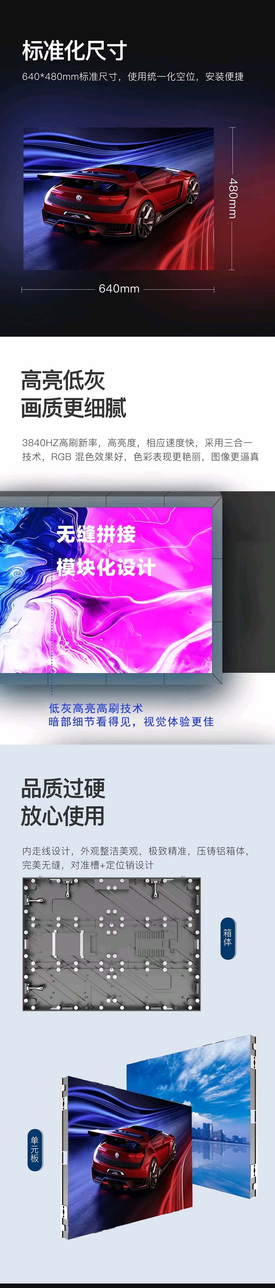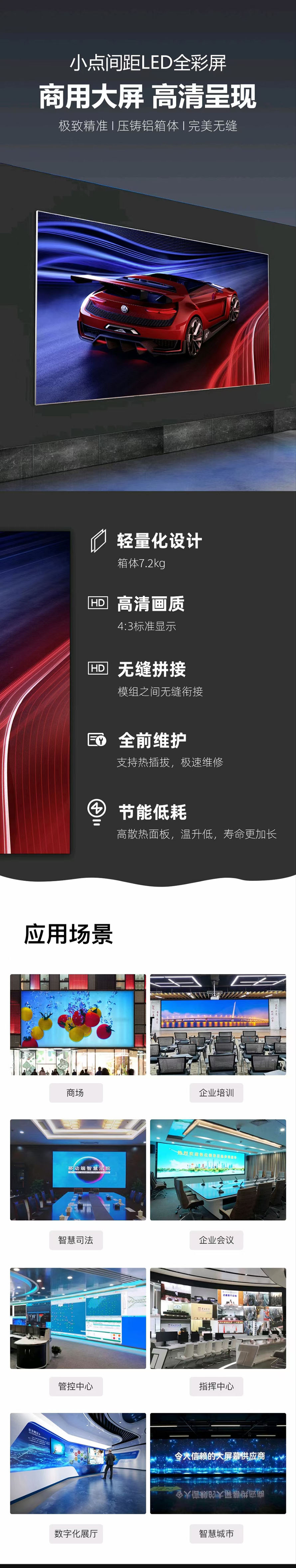 小間距LED顯示屏是指LED點間距在P2.5以下的室內LED顯示屏,主要包括P2.5、P2.0、、P1.923、P1.875、P1.667、P1.5、P1.25等LED顯示屏產品。隨著LED顯示屏制造技術的提高,傳統LED顯示屏的分辨率得到了大幅提升。小間距LED顯示屏采用像素級的點控技術,實現對顯示屏像素單位的亮度、色彩的還原性和統一性的狀態管控。在顯示屏的生產過程中全部采用了自動回流焊接工藝,無需手工后焊。