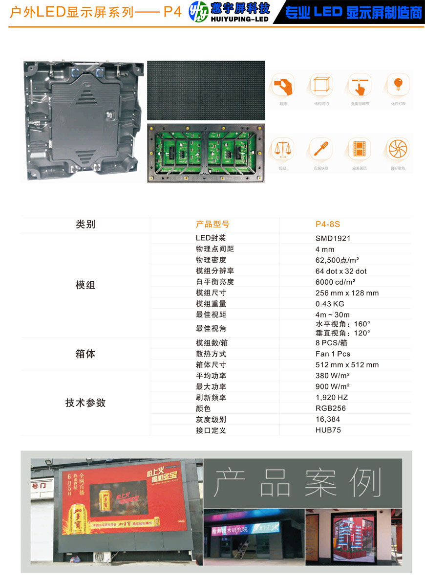 戶外P4全彩LED顯示屏產品特點: