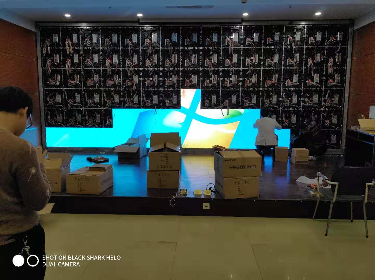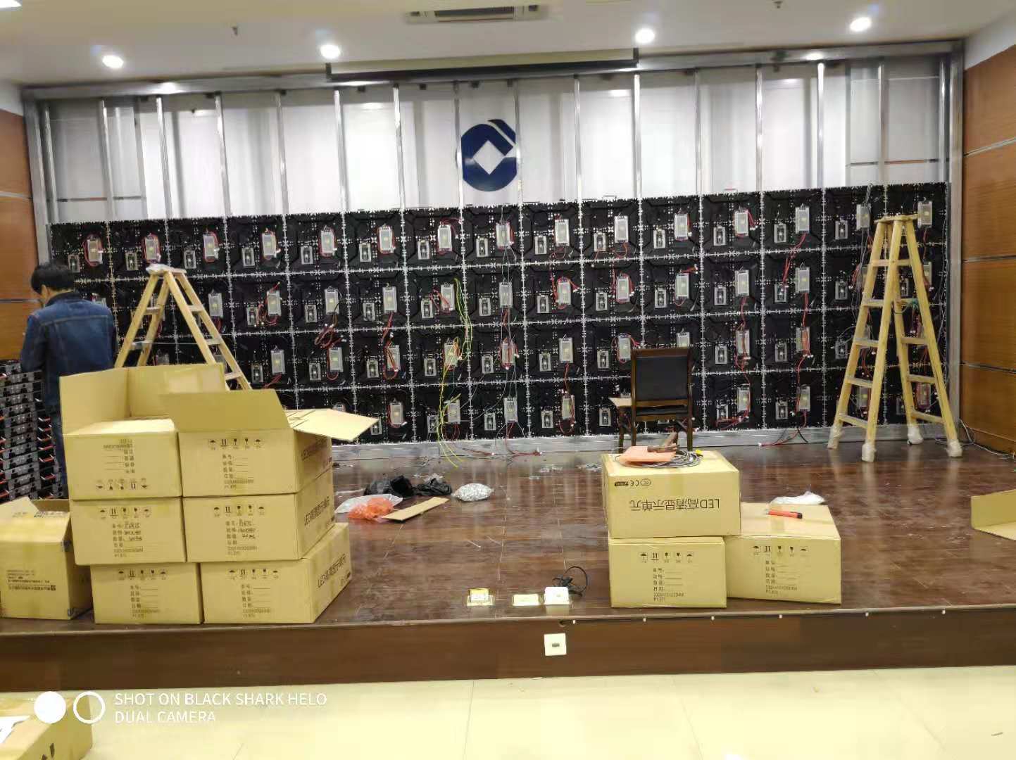 采用p1.875小間距LED顯示屏 燈珠采用晶臺封裝驅動采用高刷芯片2053 刷新達到3840