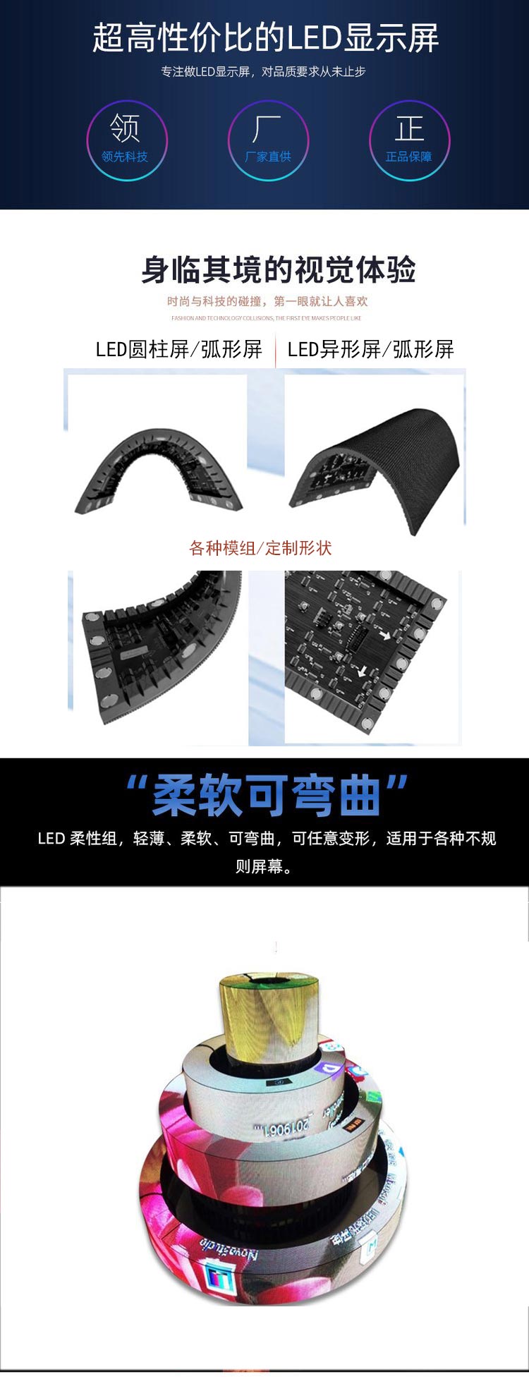 隨著LED大屏廣告技術的發展,各類LED異形顯示屏正慢慢融入我們的生活。其中有圓形、立方體、圓柱體、圓柱體等不同的形狀,其各種形狀與多種應用環境相結合。可謂五花八門,千變萬化,吸引了眾多游客的關注。